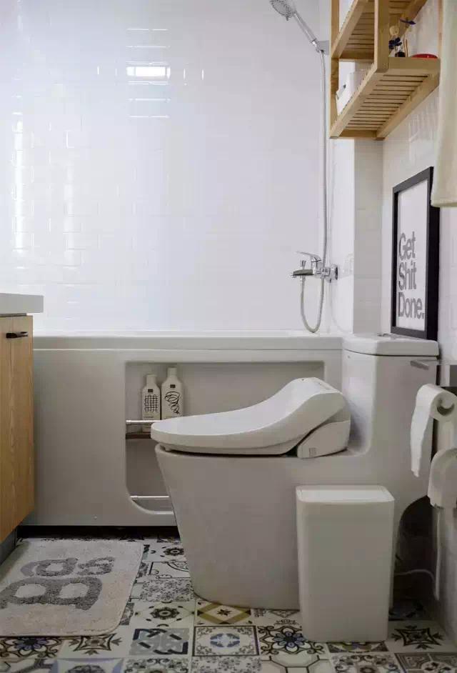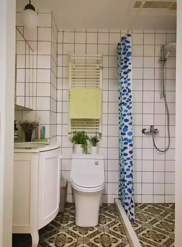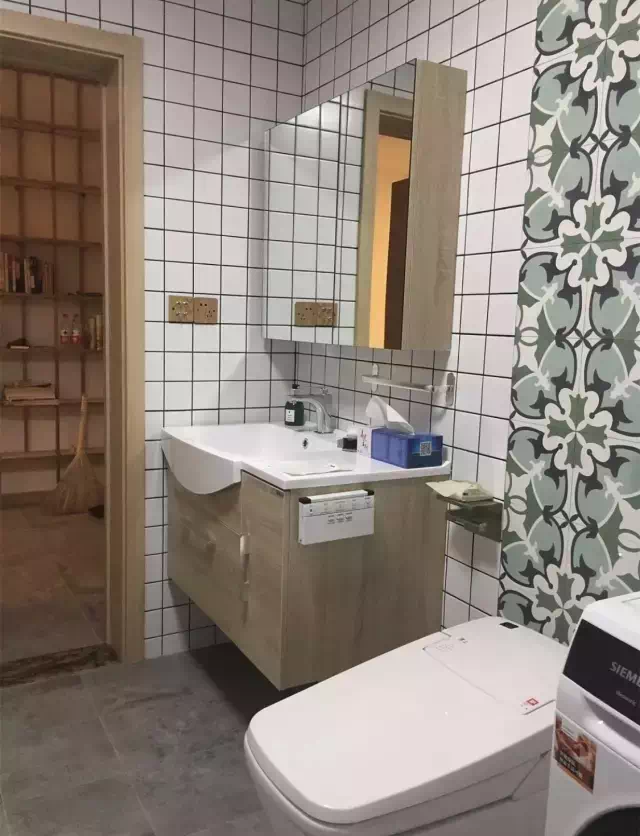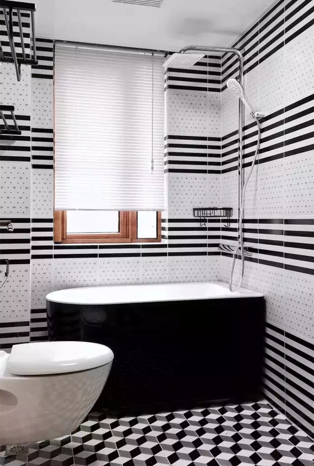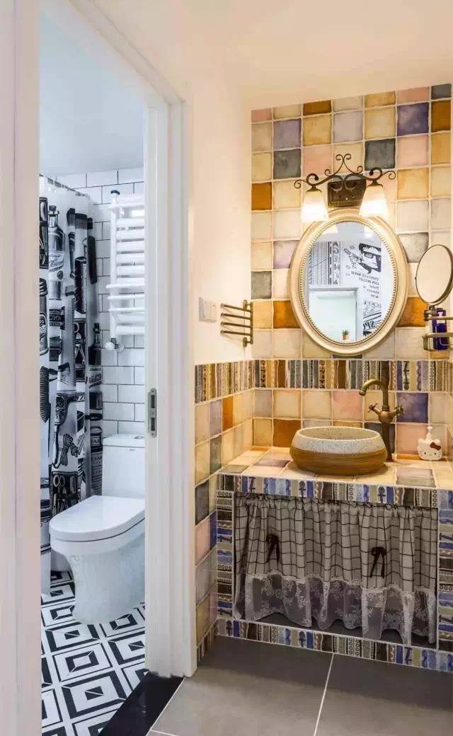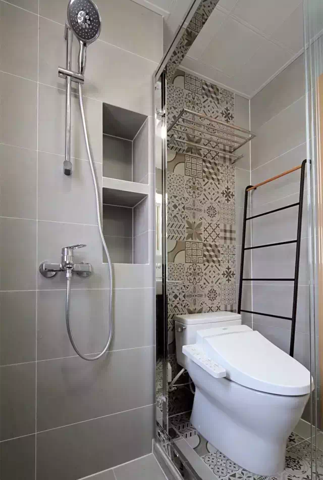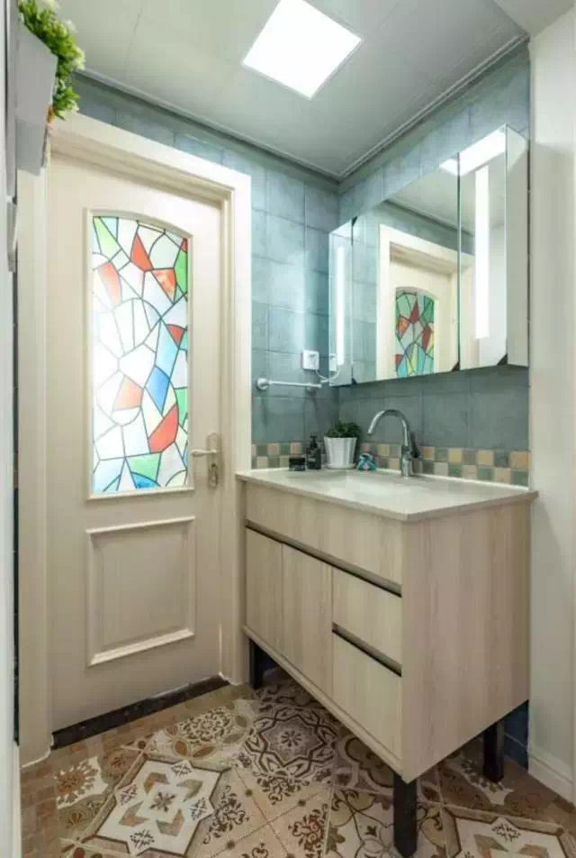 还有一种便是在卫生间的地面上铺贴花砖,营造出一种“低头是复古,抬头是时尚”的视觉效果,空间格调骤然提升。
