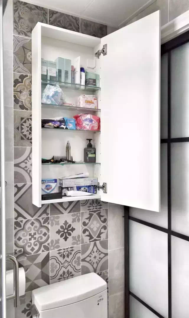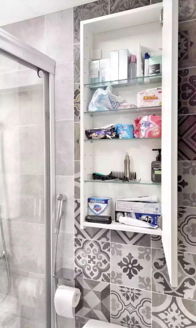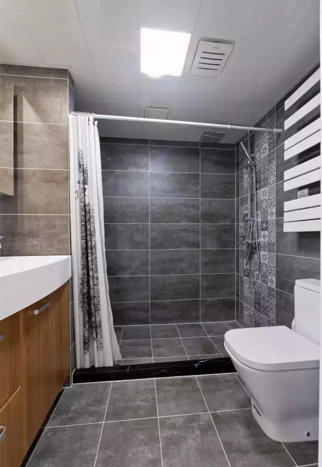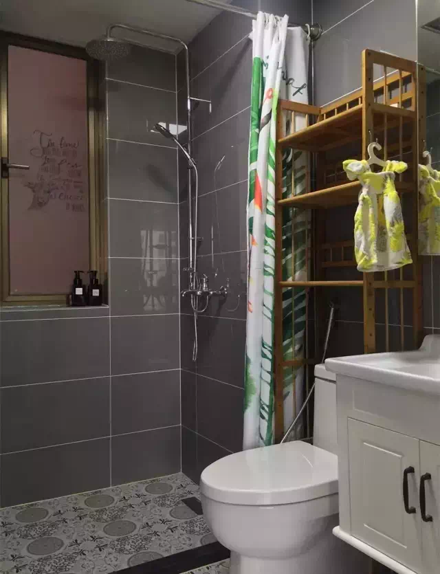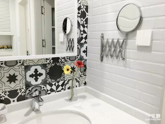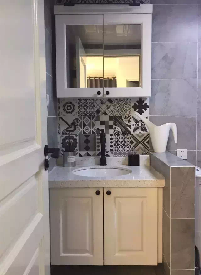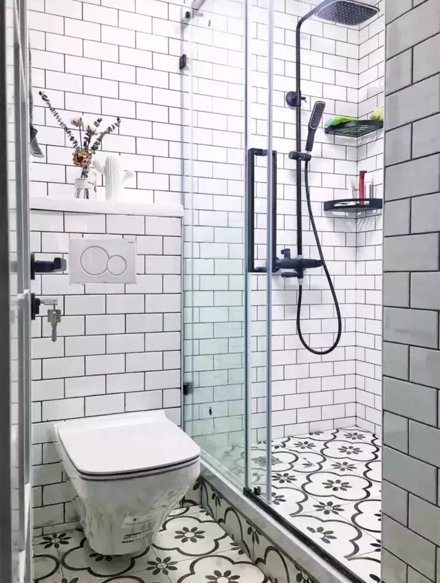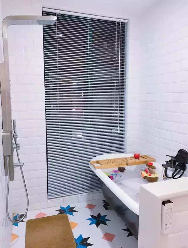 还有一种便是在卫生间的地面上铺贴花砖,营造出一种“低头是复古,抬头是时尚”的视觉效果,空间格调骤然提升。
