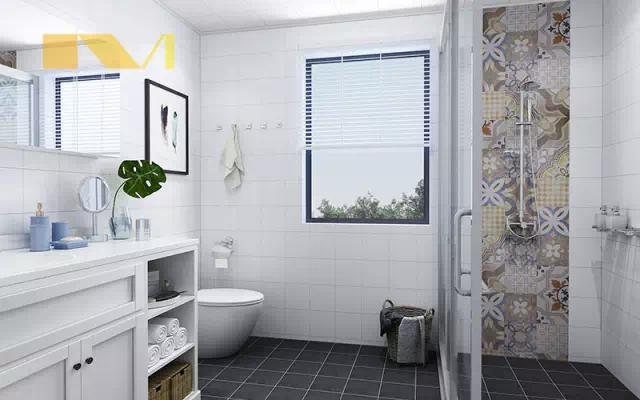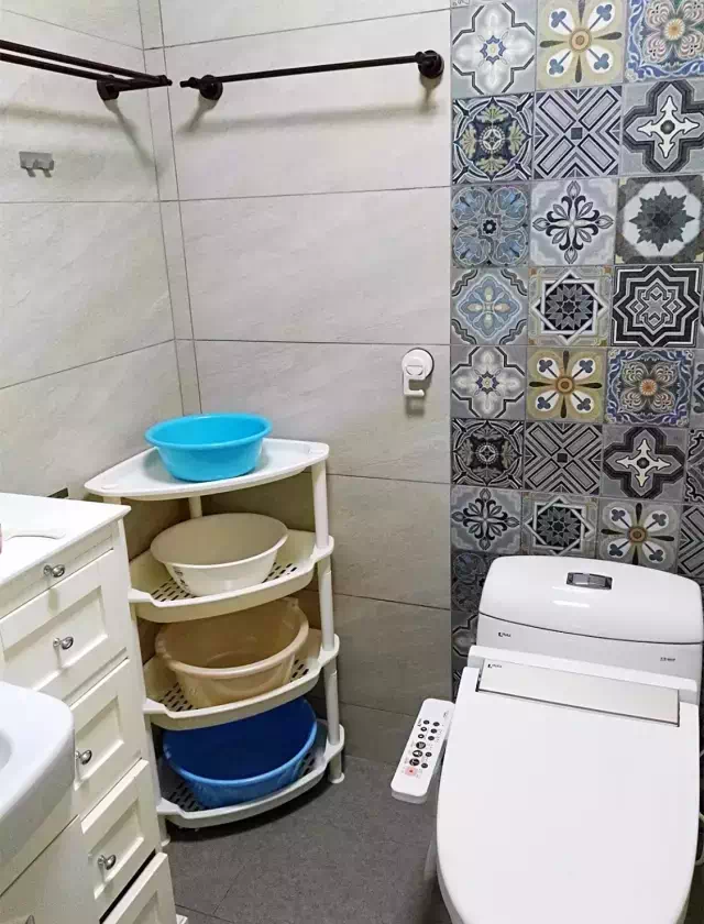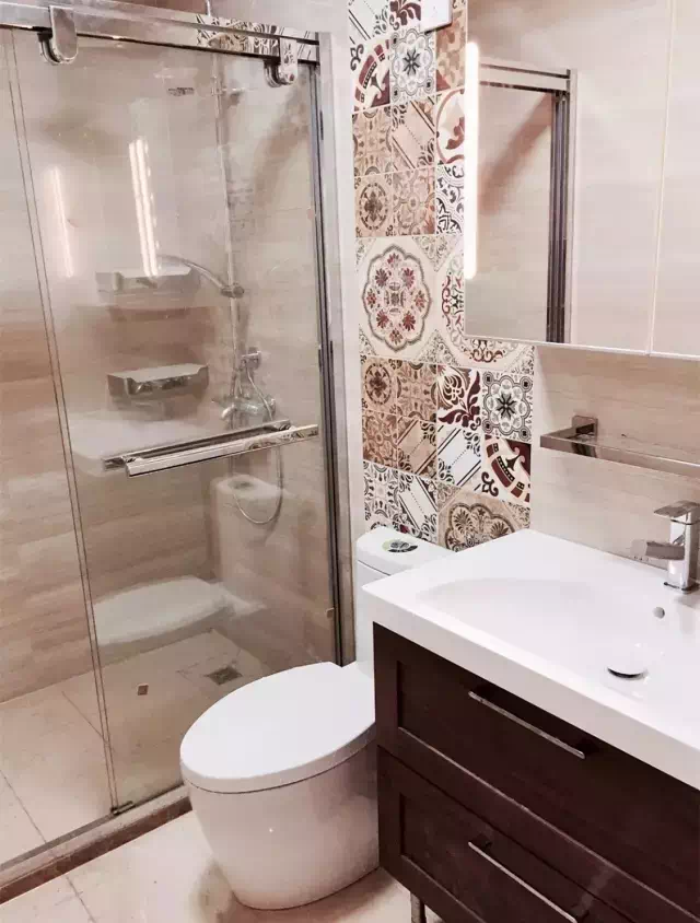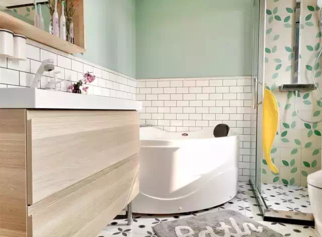 如果仅仅是墙面贴花砖的话,一般是选卫生间里的某一面墙进行铺贴,如马桶后的墙面、洗手盆墙面或者是花洒的墙面等,这个可以因地制宜自行选择。