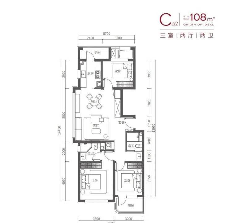 主力户型:108㎡三居、125㎡三居、145㎡四居。