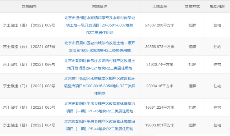 据悉,上述挂牌的6宗地块均在此前北京市预申请地块中。自9月30日开始,北京市规自委陆续挂出10宗预申请住宅地块,总起始价200.2亿元,土地面积共计约28万平方米。不过,其中房山、大兴、经开、延庆4宗预申请用地并没有最终挂牌。