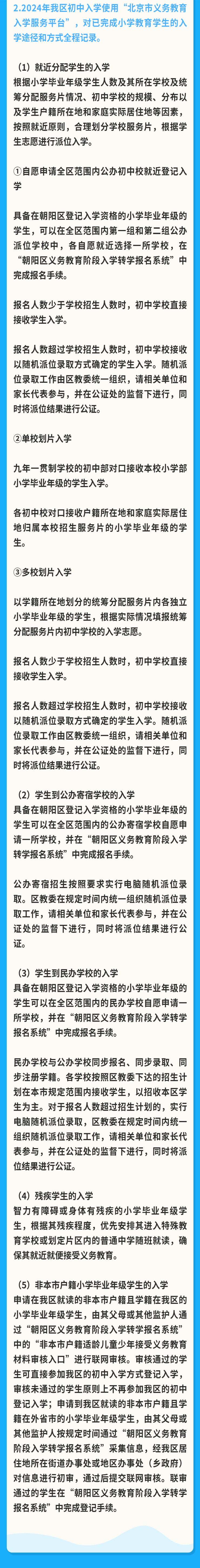 朝阳区关于2024年义务教育阶段入学工作的意见