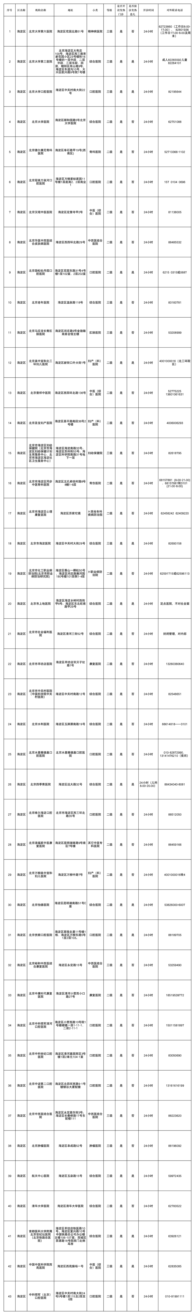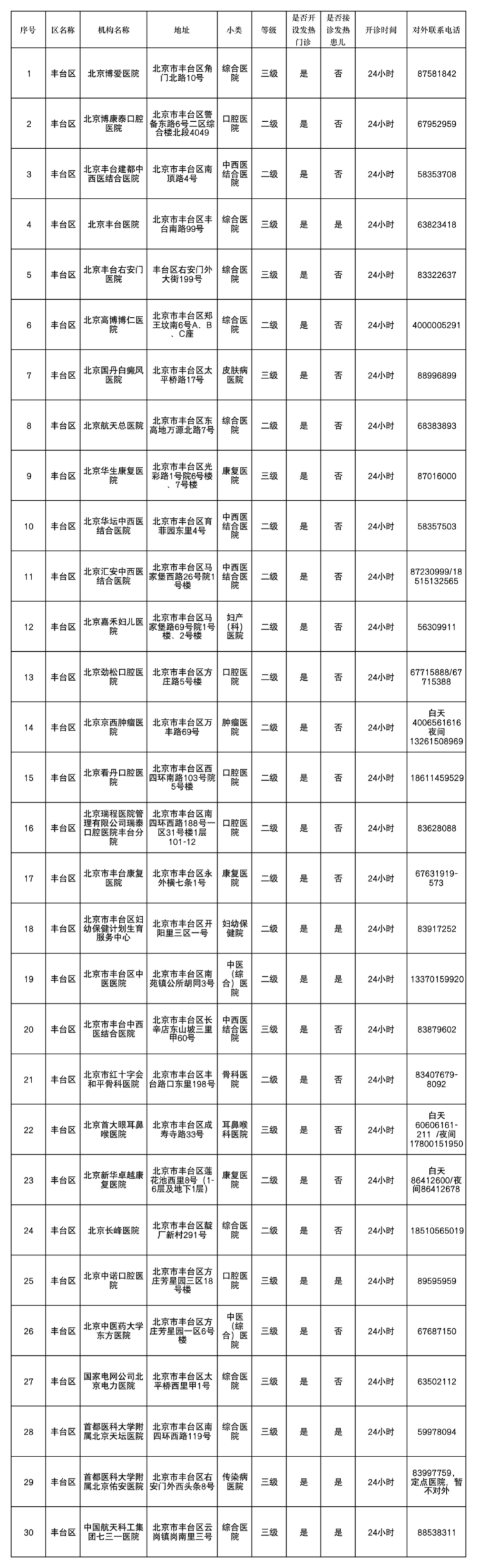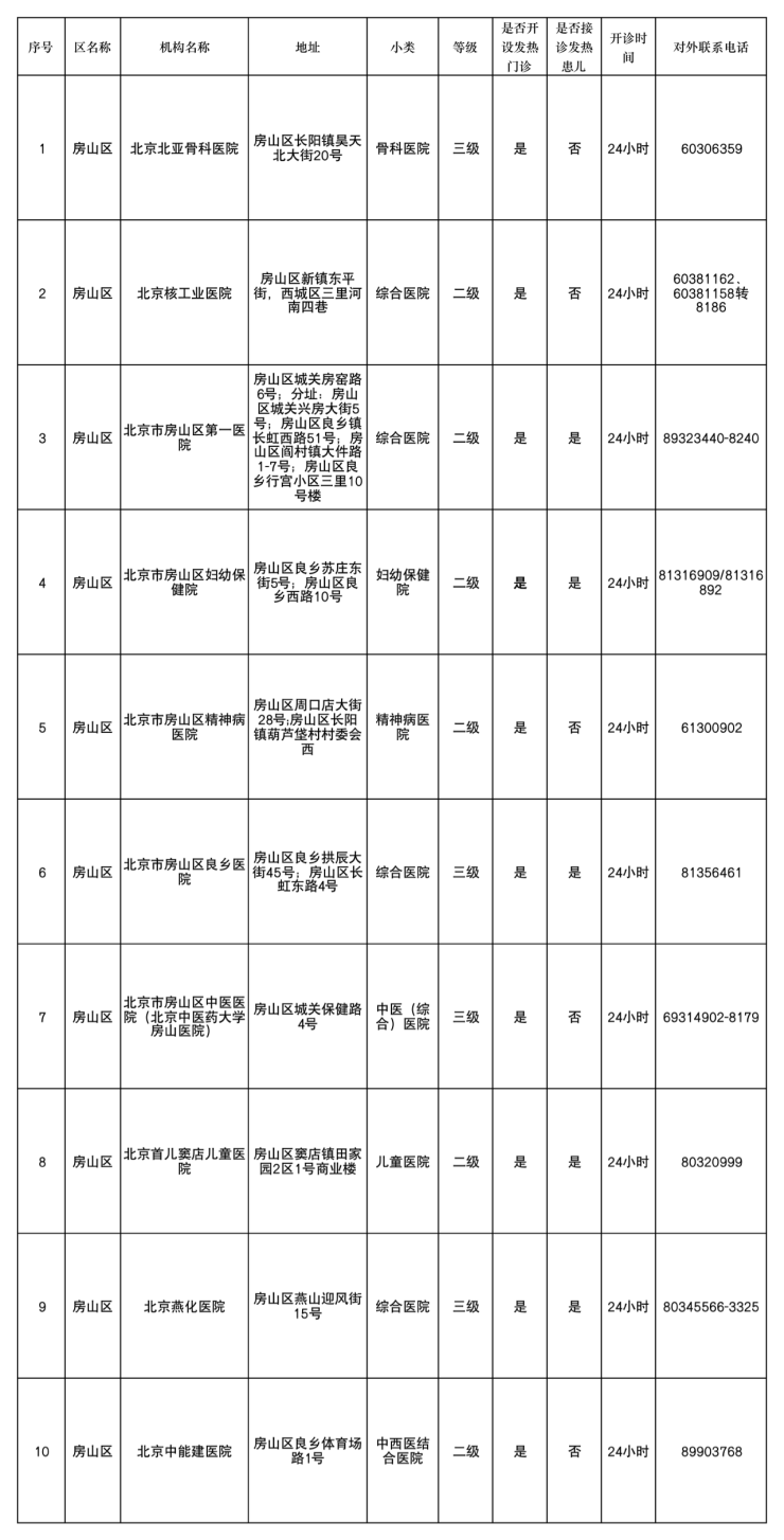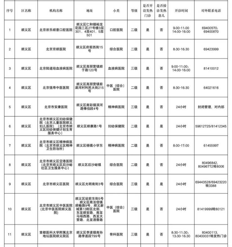 为方便群众就医,市卫生健康委汇总了各区卫生健康委报告的二级以上医院发热门诊(诊室)设置名单信息,共303家,以下排名不分先后: 昌平区29家 朝阳区60家 大兴区14家东城区18家房山区10家 丰台区30家海淀区43家怀柔区6家经开区6家…