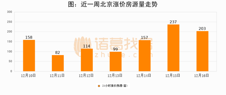 根据诸葛找房数据显示,北京24小时涨价房源量为203套,较12月15日减少34套,环比下降14.3%。与此同时,涨价房源占比小幅回落,对于购房者来说是一个入市窗口期,购房者可抓住时机入市。