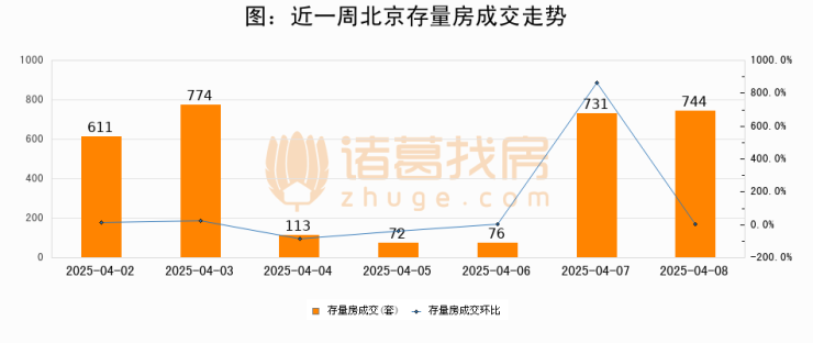【北京成交日报】04月08日二手房744套;涨价房源76套