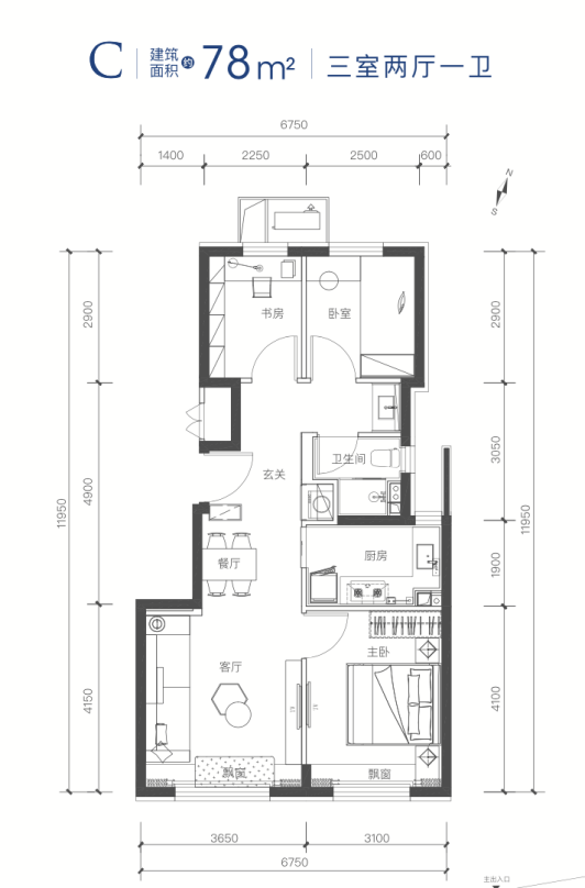 建面约78㎡户型突破性做到了三居,这在市场来说难得一见。客厅尺度做到了约3.65米,堪比百平户型尺度更受高知高智人群青睐的是,北侧卧室可开可合的X-room可变灵动空间,可以是一个整体的开放书房、工作室。亦可以封闭形成两个独立的卧室空间,让生活拥有更多可能性。