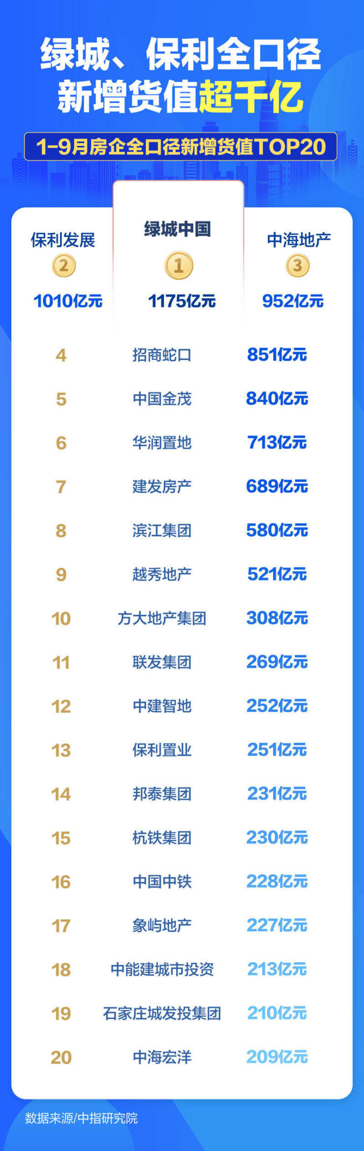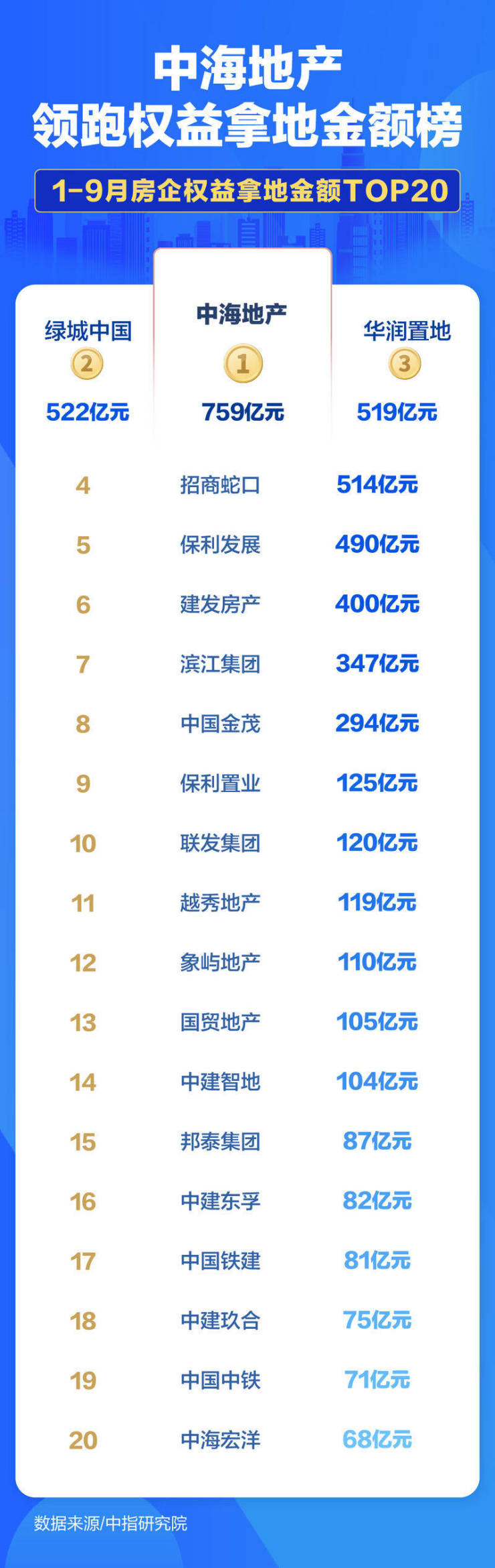 地产图谱|前三季度房企拿地上演“强者游戏” 绿城、保利领跑