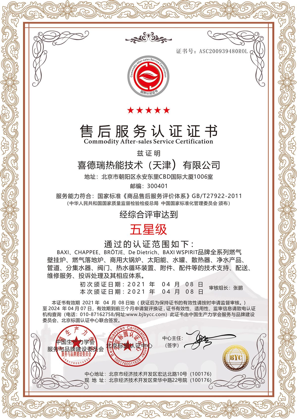 GAC、GDC等专利,热效率高达109%,节能超过30%甚至40%,低于世界较严限制的超低氮排放,主换热器设计使用寿命超过150年,锅炉实际使用寿命高达25年……喜德瑞各品牌、各系列产品的先进优势和独有特色数不胜数。值得一提的是,其售后服务也达到与之匹配的高端等级。除获星级产品认证,喜德瑞在售后服务方面同样拥有五星认证,荣获「五星级售后服务认证证书」、「全国产品和服务质量诚信示范企业」、「全国质量检验稳定合格产品」系列荣誉。