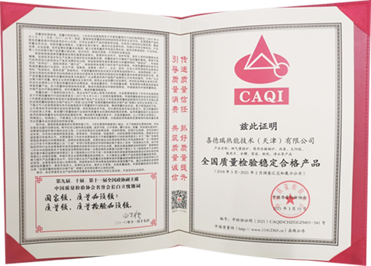 喜德瑞所获五星级认证,是经过CGAC及中国市政工程华北设计研究院对其在售产品的性能、材质、设计、以及节能环保属性等各方面进行综合评估之后授予的较高等级证书。得到专业机构认可,且首批认证即入选,这意味着喜德瑞锅炉的先进品质确已达到业内先进水平。