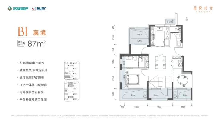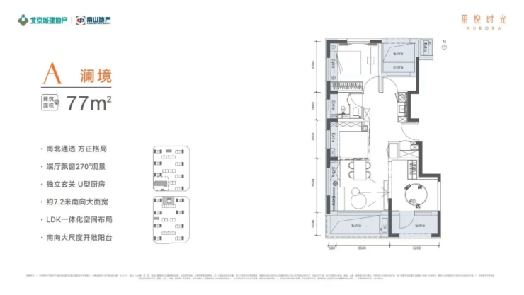 77㎡户型,小户型也做到南北通透,约270度的观景。