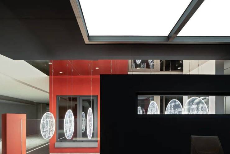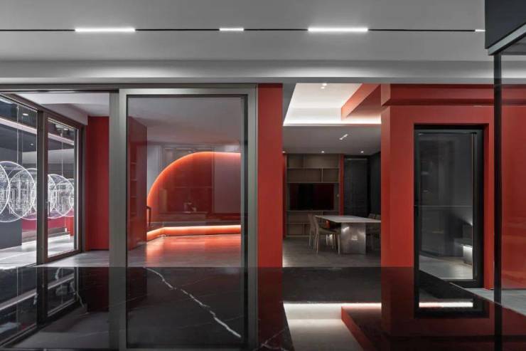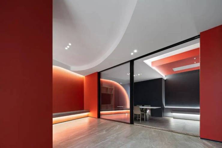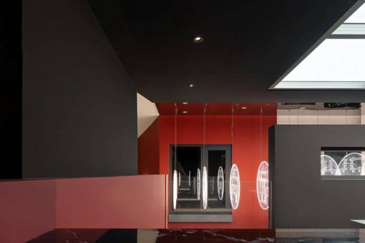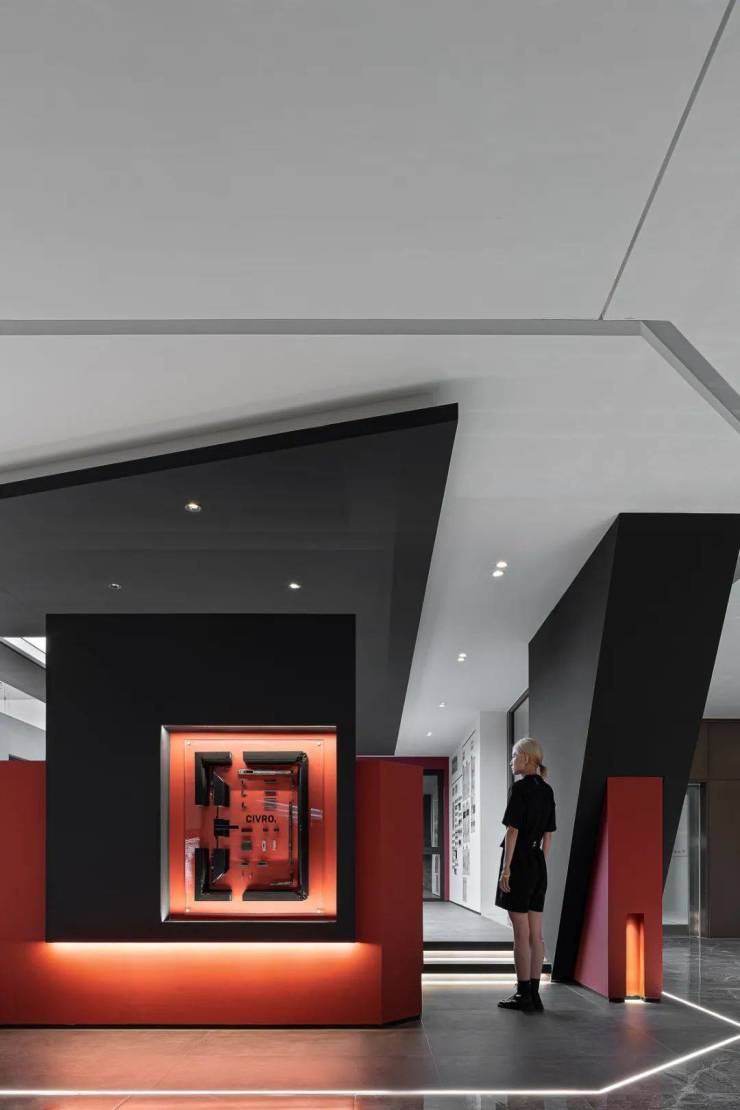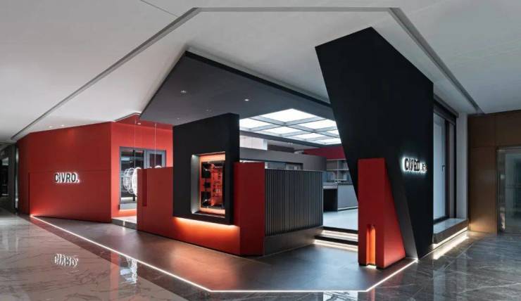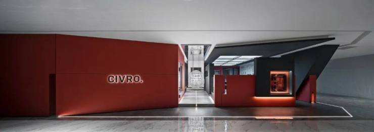我们把一粒水放到一个碗里。那么。你找不到那粒水?但是如果我们把一粒颜料放到碗里,就可以把水染成你想要的色彩。整个展厅的背景色的选取,来自希洛企业经典的红黑配色,设计师孙晋昌将它作为原点去发散做成整个展厅的背景色,不仅令人印象深刻,又代表着CIVRO希洛独有的品牌调性,远远望去,醒目而高贵,指引着大家走进一个全新的世界。