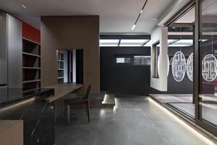 展厅,尽管它不会说话,但是可以通过各种各样的物料向外界、客户展示品牌实力和感受力。设计师大量应用门窗的组合,既展示CIVRO希洛的技术、工艺实力,同时表达出设计师对时间与空间、人与自然、自我和外界的理解和认知,彰显空间延展与安稳的力量。