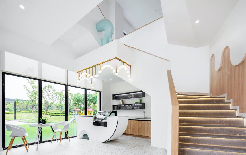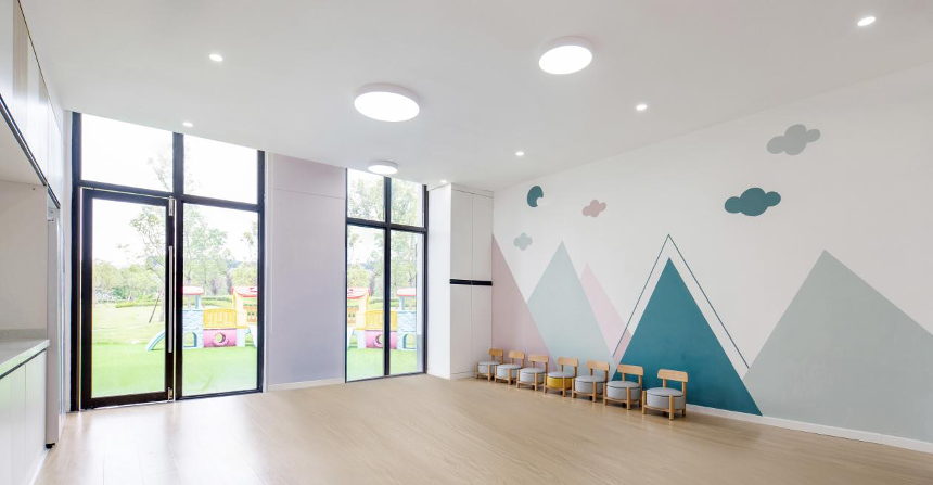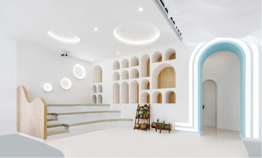 设计师孔德明在设计的过程中,不仅考虑到环境对孩子成长的影响,更是结合了课程的设置、空间的安全性等多方面来操作,大量圆拱形的设计意在传递温润和圆满,让孩子不管在哪个空间,都能感受到和谐与温暖,在这里,可以自由自在地成长。