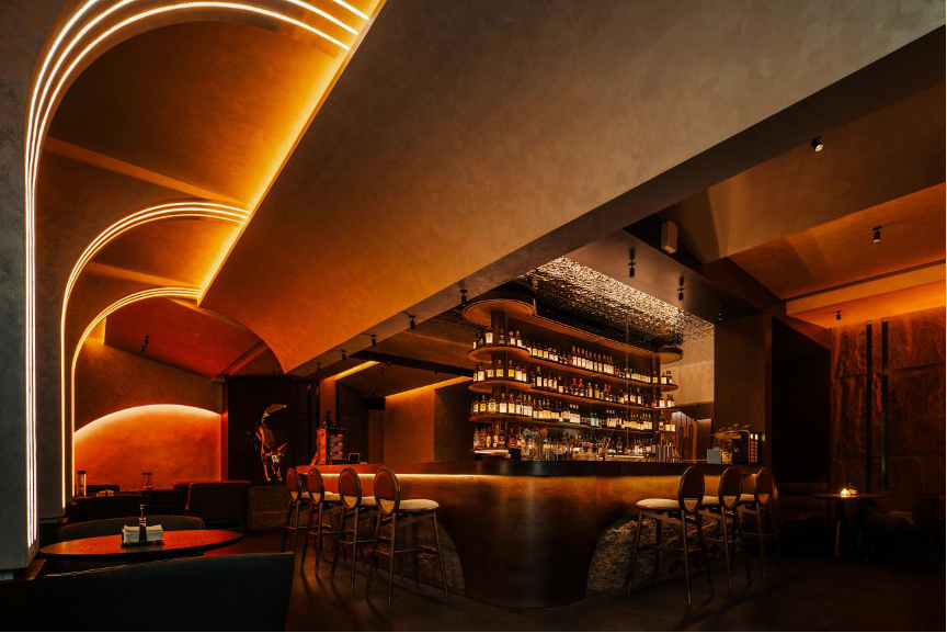 这个酒吧的设计以新的方式诠释生活与酒文化的关系,将其囊括进自己的生活方式中,自得其乐;如果每个人都看似是独立的存在,那这个日落大道酒吧,就是每个人共有的精神润泽之地,举杯交错的一刻就治愈了内心。作为设计师孔德阳捕捉到了这层情绪需求,将酒吧成为一个通道,让成年人卸下诸多的烦恼,在幽静的角落里总能找到令自己舒怡的状态,以轻松之姿走上这条“落日大道”,便寻觅着生活的诗意。