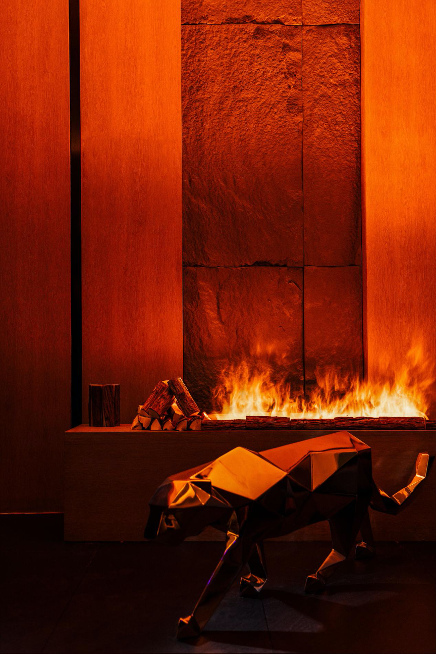 设计师孔德阳说:“将酒吧打造为自然风,一改往日的灯红酒绿,粗狂的石材、原木板材、石头风格灯具等都是为自然而生,从而与多种元素结合,让隐藏在此的小动物造型饰品也能在酒吧里安家,一切都融合的恰如其分。” 将自然意境围绕饮酒的氛围,解除束缚,毫无压力地品酒畅聊。