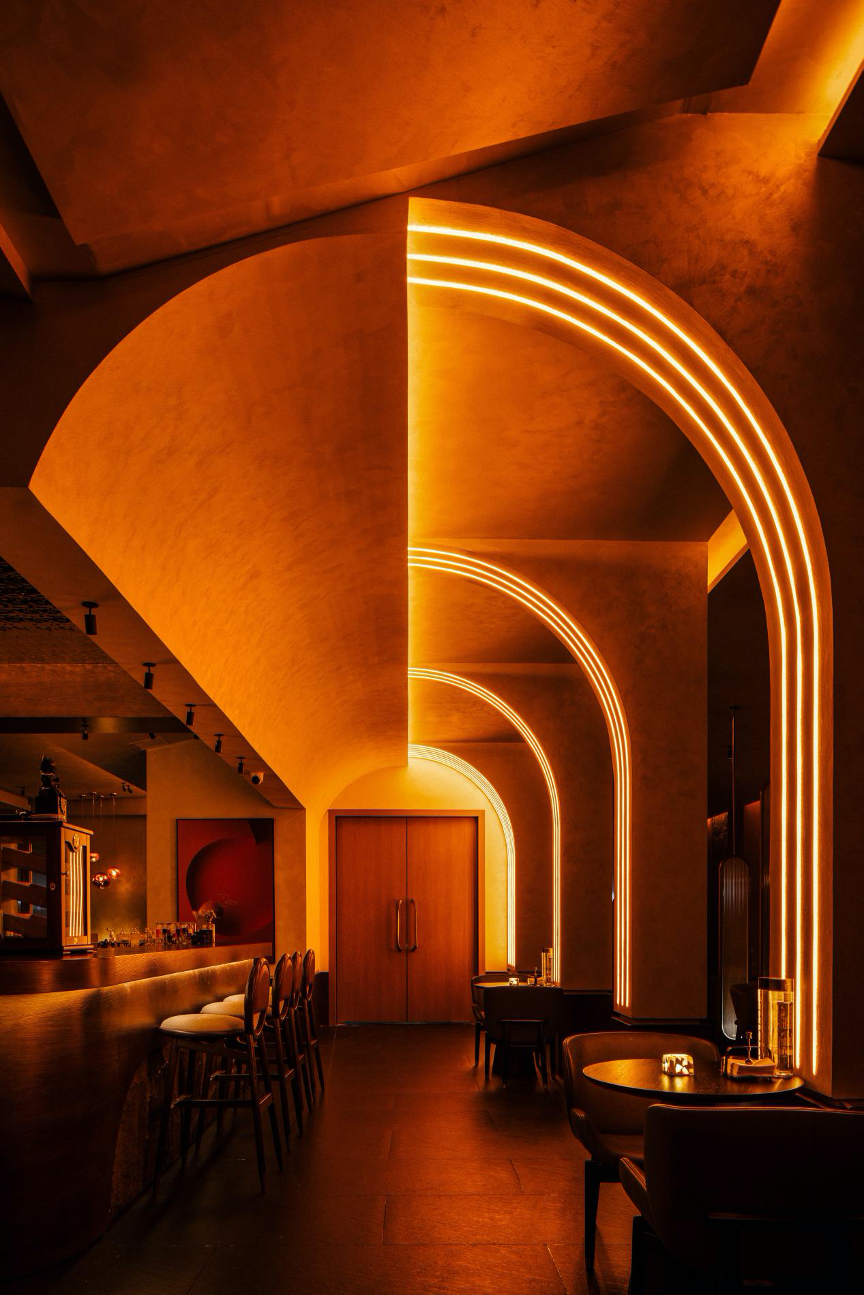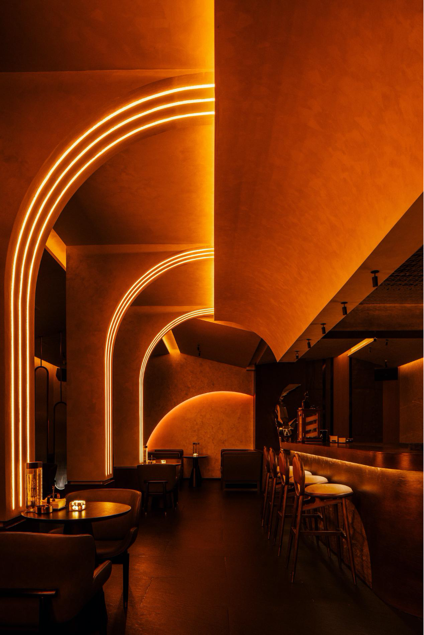 设计师孔德阳以“卸甲”为灵感,将酒吧文化与情绪体验相融合。在灯光与色彩的熏陶下,身在其中的人呈现出冲动又克制的情绪,藉由酒打开的短暂才属于个人时光,让灵魂在这个混凝土盒子中得到释放和救赎。