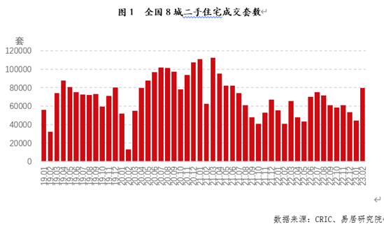 易居研究院的数据显示,2月份,北京、上海、广州、深圳、成都、杭州、南京和厦门等8个重点城市二手房成交套数为79438套,环比增长78%,同比增长96%。当前成交数据创下了20个月来的新高,即2021年7月份以来的月度最高值。