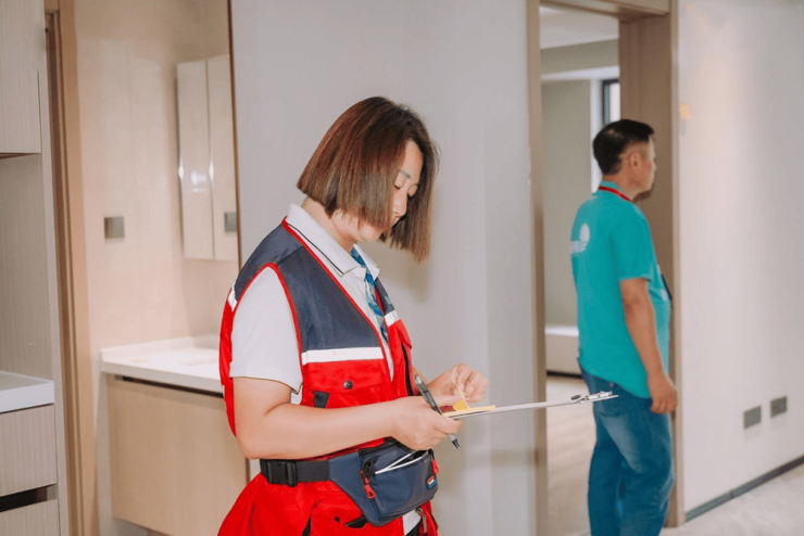 真正的品质,经得起最严苛的检验。在查验现场,国誉朝华以"一房一验"的严苛标准,展现了北京城建作为国匠的自信与担当。物业团队与工程专家全程陪同,从墙面平整度到门窗密封性,从装修建材到电气五金,逐项排查、细致讲解,不放过任何细微之处。特别值得一提的是,项目采用"一户一档"的验房制度,所有问题实时记录、限期整改,确保未来交付时"零瑕疵"。