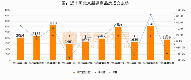 【北京成交周报】第20周新房成交1839套,二手房2717套,涨价房源1480套