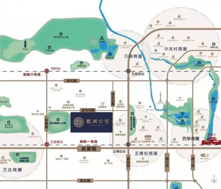 恒盛·欧洲公馆:项目位于海淀区西四环长安街向北800米,西侧200米是玉泉路,与西长安街延长线交汇、东侧1.2公里就是西四环、项目2000米内有三个公园,从社区3号楼小门刷卡出去就是西侧的阳光星期八公园。