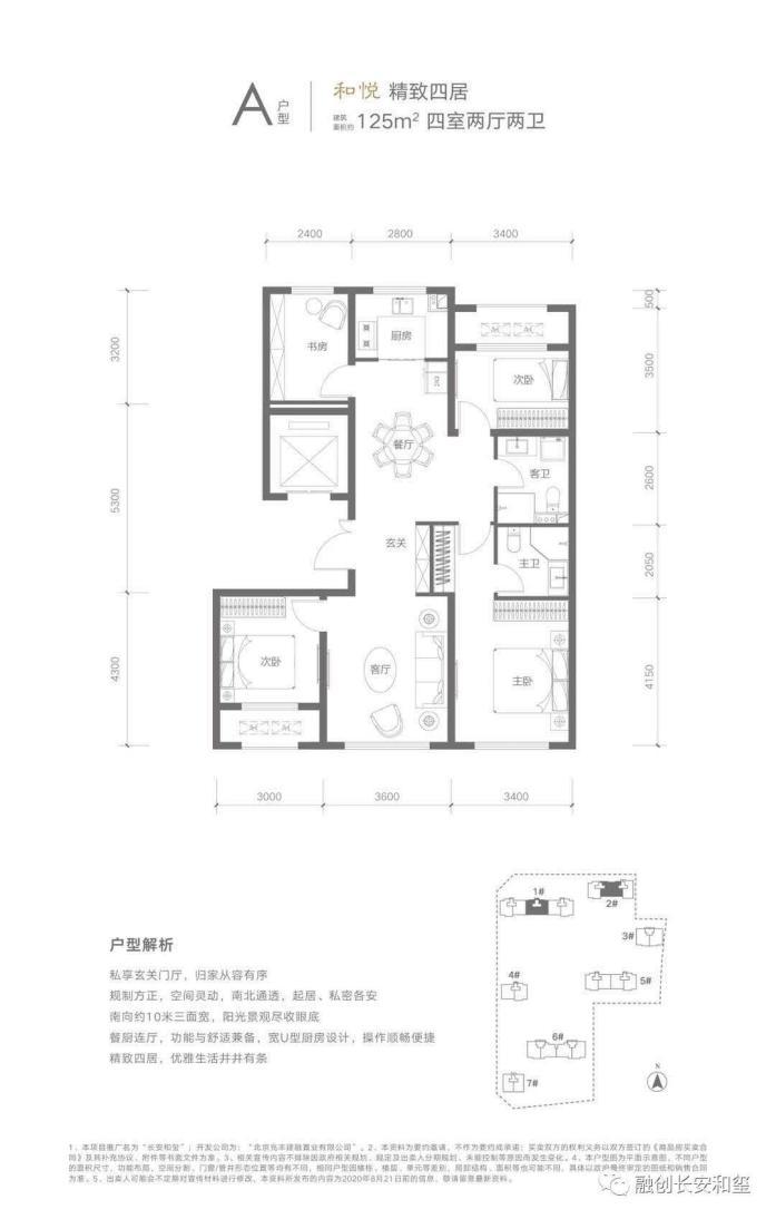 在这里,来看一下125平的和悦四室两厅两卫户型。南北通透,户型整体方正。南向三面宽,卫生间干湿分离,U型厨房烹饪操作更加顺畅便捷。入门的玄关设计,使得房间拥有更强的私密性。购房专家买房问题请添加小助理微信号:goufang02 有问必答!