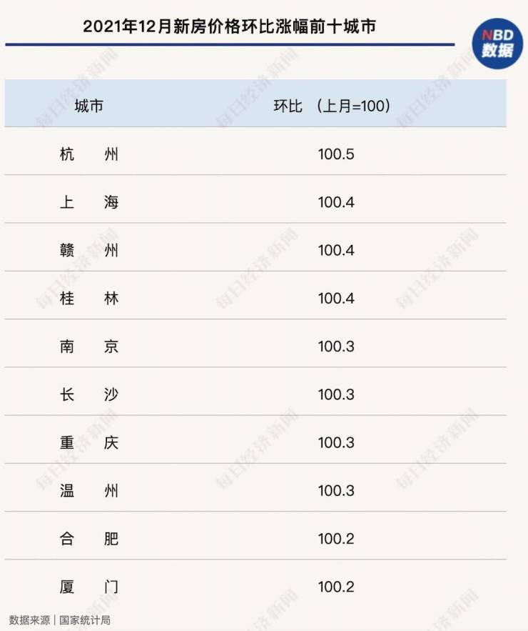 杭州的新房价格涨幅排名,从2021年8月的全国第六,一路升至12月的全国排名前列。
