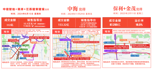 回顾北京朝阳区的土地出让历程,组团供地模式已从最初的创新尝试,逐渐演变为常态化的供地策略。2024 年 6 月,朝阳区迈出关键一步,推出首宗组团地块,由中建智地联合体以底价 112 亿元摘得。该地块开创性地将住宅、产业、商业配套用地组合供应,开启了北京土地出让的全新模式。同年 11 月,中海地产以 153.32 亿元竞得的组团地块,更是刷新了北京土地出让历史纪录,彰显出组团地块的巨大市场潜力。今年 2 月,金茂与保利发展联合体成功竞得三间房乡地块,溢价率达 10.5%,进一步验证了这一模式的市场吸引力。