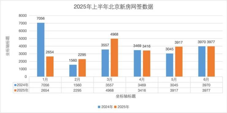 据统计,2025年1-6月北京新建商品住宅网签总量为21227套,较2024年同期的22,657套下降约6.3%。
