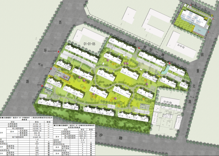 共规划包含28栋建筑物,分别为: 21栋住宅楼、2栋配电室、1栋物业管理用房、1栋分界室、1栋幼儿园、1栋教育咨询室(门卫)、地下车库。