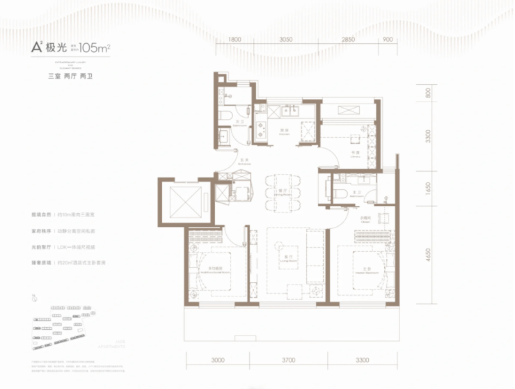105平三室两厅两卫(A2),10米南向三面宽。