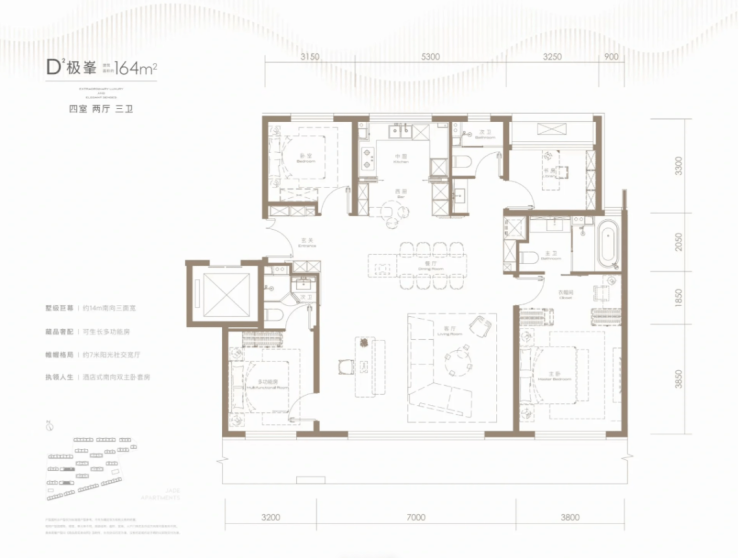 面宽约5.3米宽景横厅,空间尺度上更舒适,而且动线更合理,户型也比较方正,南方开发商很爱做这类户型。