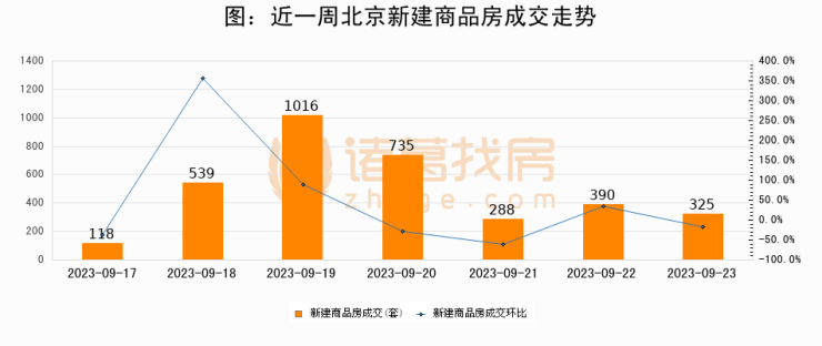 【北京成交日报】09月23日新房成交325套、二手房243套;涨价房源188套