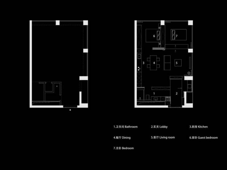 本案位于北京朝阳CBD,我们做了一个没有墙的家,利用柜体和门来分割空间,希望为屋主呈现出属于他气质的空间。原始户型属于框架结构,我们将所有隔断墙拆除,重新整合空间,安排动线,将空间最大限度的打开。