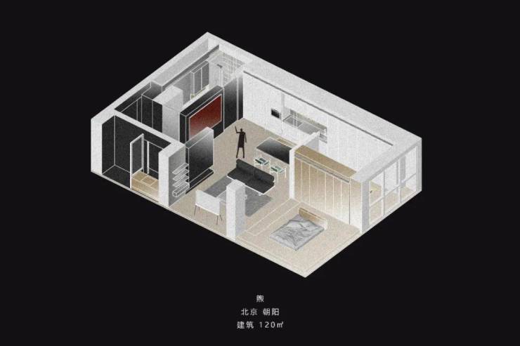 In a drop-down space in Chaoyang, Beijing. We created a home without walls, using cabinets and doors to define the spaces. We aimed to present a space that reflects the homeowner's personality. The original layout was a framed structure. We removed all the partition walls, reorganized the space, and redefined the flow, maximizing the openness of the area.