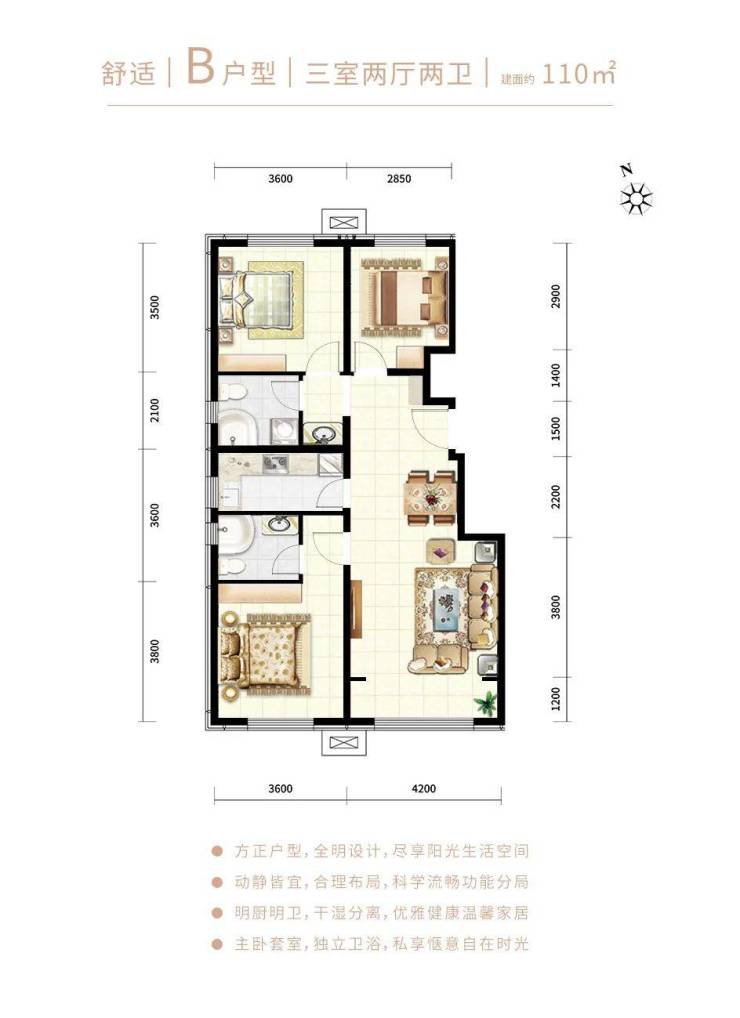 梧桐浅山目前在售的两个户型都是为刚需、刚改家庭量身打造的。