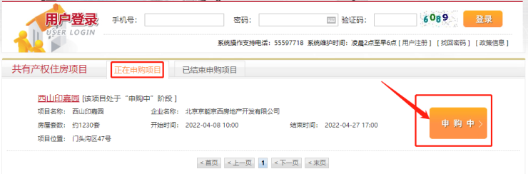 登录后,选定处于申购期的项目,点击‘申购中’按钮进行申购。