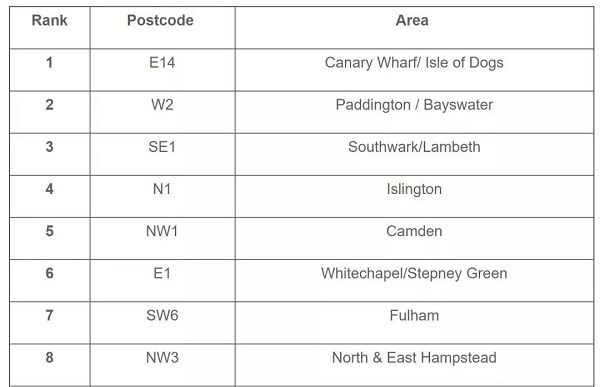 此外,据Centre for London发布的较新统计数据,伦敦租房市场正变得年轻化,租客平均年龄为32岁,且53%的伦敦租房者年龄在29岁以下。而年轻租客最偏爱的租房区域,是E14区金丝雀码头。