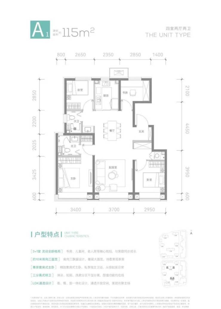 115㎡四居,经典的四叶草户型,也是最大的户型,三面宽朝南,主卧套房,每个空间互不打扰的同时,又能形成完美的洄游动线。多功能空间3+1的极限利用,可以变成书房、老人房、儿童房、电竞房,更好地满足现代家庭成长需要。
