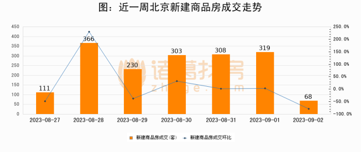 【北京成交日报】09月02日新房成交68套、二手房98套;涨价房源1048套