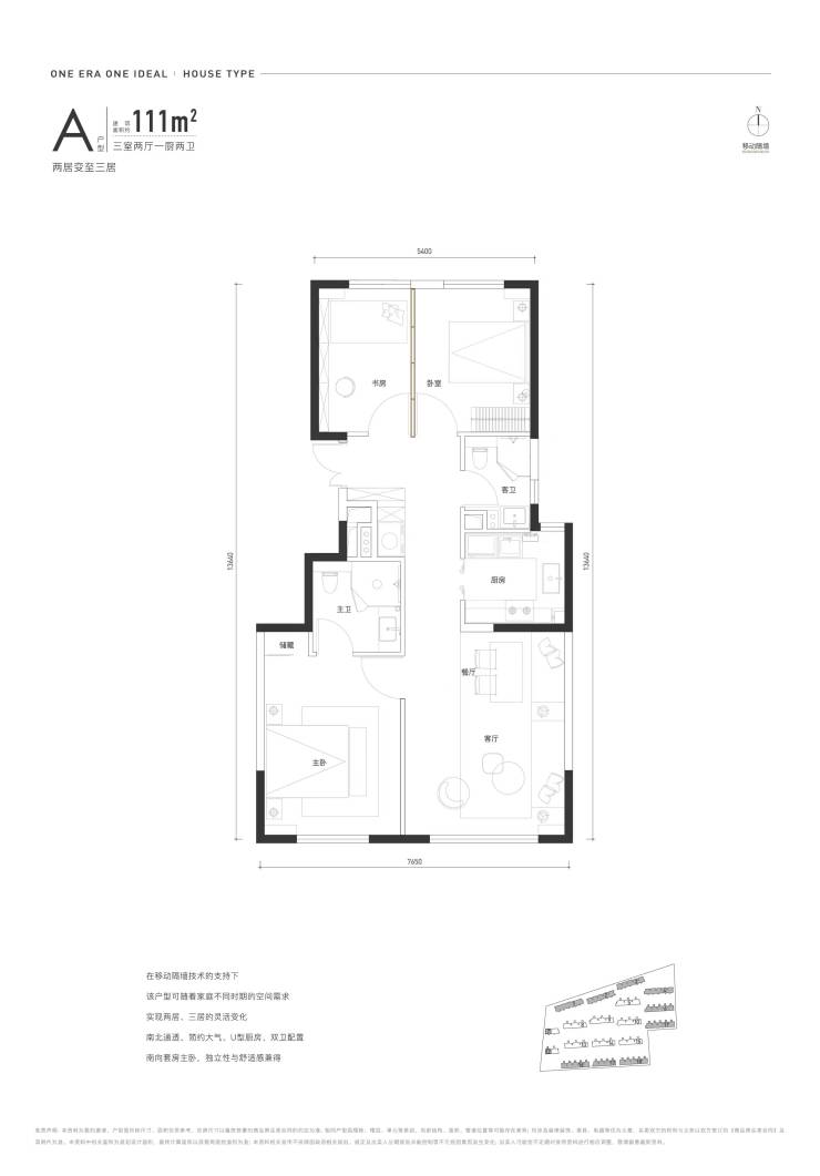 解析:111平三居室,南向面宽约7.65米,勾勒出明亮温暖的生活画卷;主卧套房设计,私密性更好;客厅空间尤为卓越,尺度很宽敞,保证室内良好采光。北侧配置了卧室与书房,灵活性高,可随需打通,转换成一间大卧室,私享更广阔的个人天地。有独立的洗衣与多功能收纳区,非常实用。