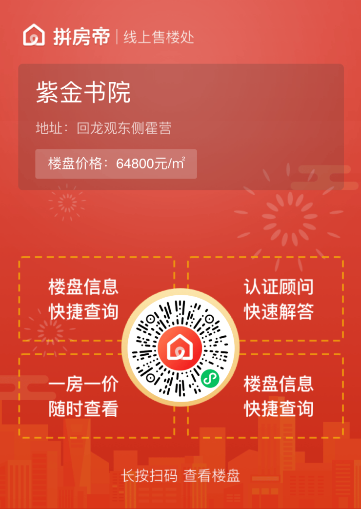 紫金书院地处昌平回龙观板块,位置非常好,未来的流通性不会差;项目周边配套齐全,生活便利;均价6.5万,和周边二手房相比,很有优势。最后两栋楼即将开售,想在回龙观买房的朋友可以实地去看一看。