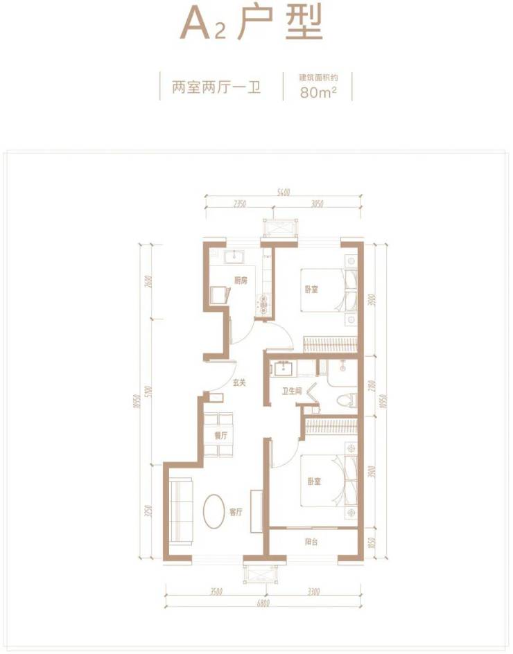 建面约80平米,通透两居,动静分区。