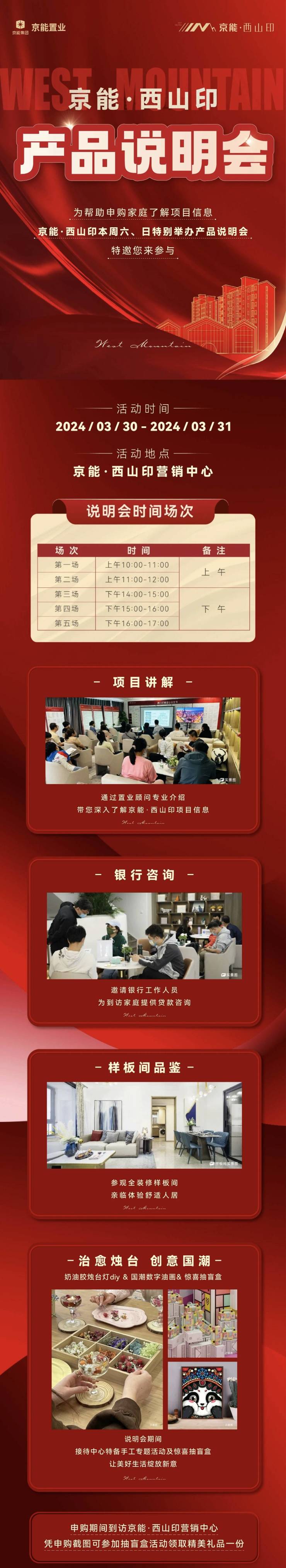 京能·西山印为帮助申购家庭了解项目信息,在本周六、日特别举办产品说明会和主题DIY活动,到场凭申购截图还可以抽取盲盒,感兴趣的朋友不要错过👇