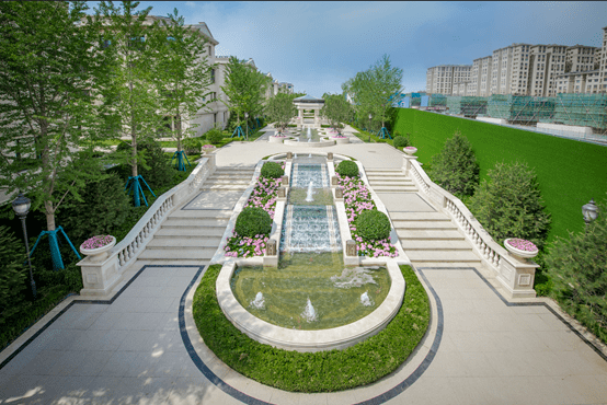 擘划约120米熙樾景观大道,打造主入口广场、阿狄丽娜中轴水景、爱之亭、罗曼广场等“一轴四境”景观体系。