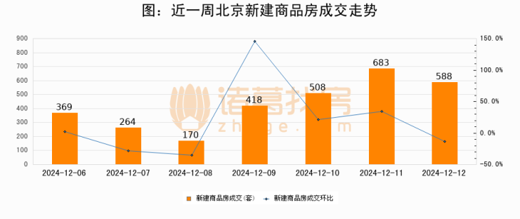 【北京成交日报】12月12日新房成交588套、二手房1030套;涨价房源149套
