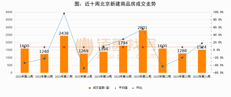 【北京成交周报】第24周新房成交1524套,二手房3825套,涨价房源519套