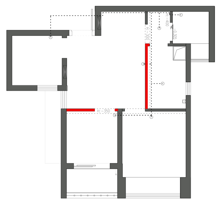 ▪封堵原始厨房门,避免和进出卫生间的动线冲突