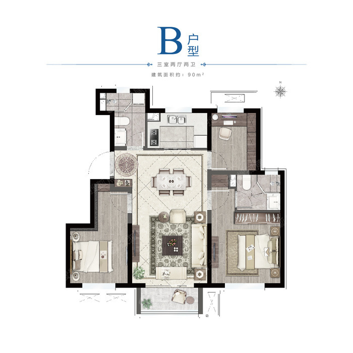 这些90平户型神了!南向三面宽的三居来了