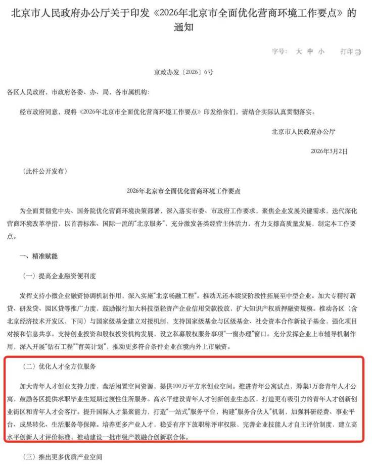 2026年3月17日,北京市发改委发布 《2026年北京市全面优化营商环境工作要点》,