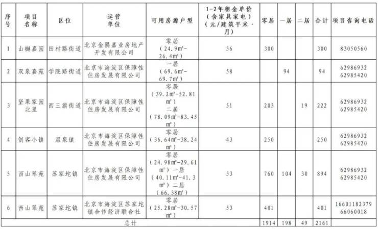 此次配租房源共6个项目,2161套,配备家具家电,可拎包入住。